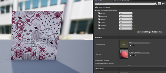 I can also use other textures as the background since I made it an instance. For example, I switch out the base color with cardboard material instead. This gives the assets more variety.