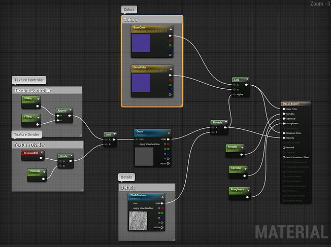 Other than small decoration assets, I also use texture atlas for decals by creating instance material. By creating an instance, it allows me to pick and choose each decal in real-time.