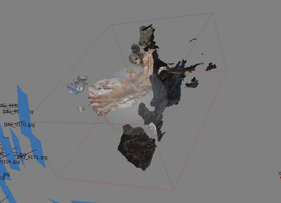 The mesh that I created were deformed and scattered around, meaning that the mesh can not be used since it does not give us the information that we needed. I am assuming that it is because of the white background and not enough information to differentiate different parts of her arm.